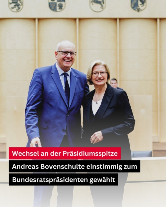 Mit Andreas Bovenschulte hat der Bundesrat außerdem einen neuen Präsidenten. Der Bremer Bürgermeister und Senatspräsident der Freien Hansestadt Bremen tritt das Amt am 1. November an.